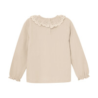 Hübsches Langarmshirt mit Spitzenkragen und gerafften Ärmeln. Gefertigt aus 95% Biobaumwolle und 5% Elastan für den perfekten Sitz und Bewegungsfreiheit. Hinten mit Druckknöpfen.
