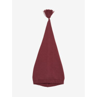 Einfarbige gestrickte Pixie-Mütze von FIXONI. Der Hut ist ein spitzer Hut mit einer Quaste daran.