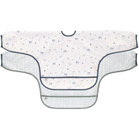 Den Doppelpack gibt es in zwei verschiedenen Designs, jeweils ein Lätzchen mit grafischem Karomuster oder Gartenmotiven.